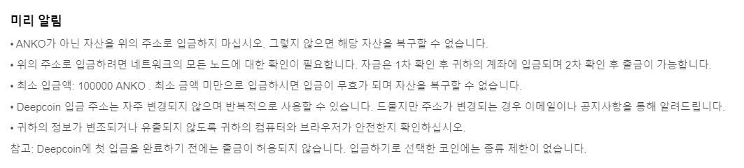 앙꼬코인 입금 시 주의사항